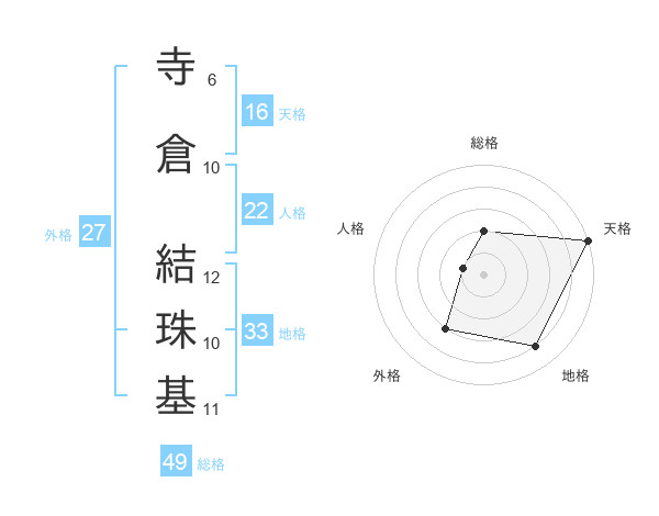 寺倉 結珠基さんを姓名の画数から五運を鑑定