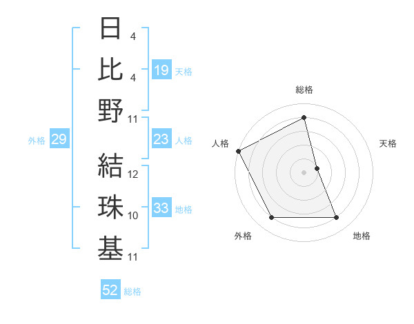 日比野 結珠基さんを姓名の画数から五運を鑑定