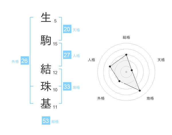 生駒 結珠基さんの外格は26画の2点!
