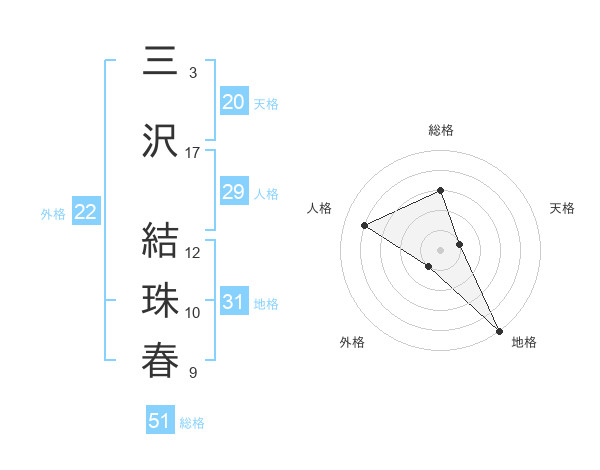 三沢 結珠春さんを姓名の画数から五運を鑑定