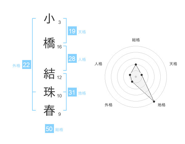 小橋 結珠春さんを姓名の画数から五運を鑑定