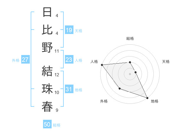 日比野 結珠春さんを姓名の画数から五運を鑑定