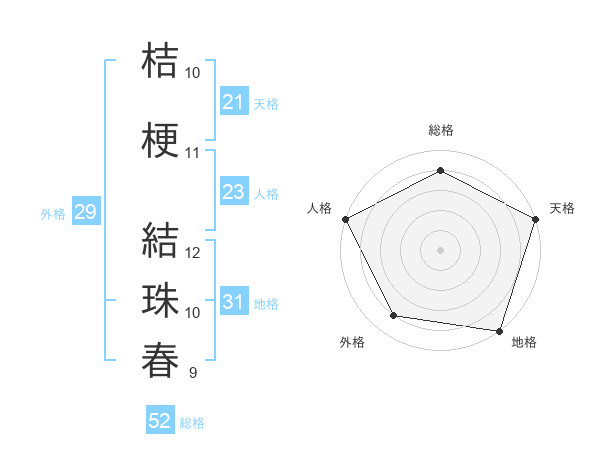 桔梗 結珠春さんの総格は52画の4点!