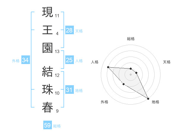 現王園 結珠春さんの総格は59画の1点