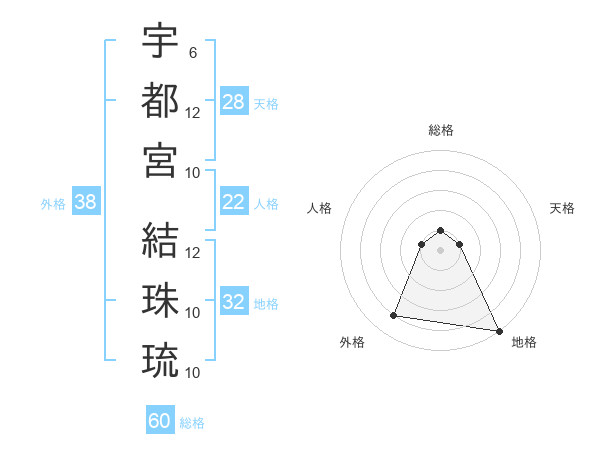 宇都宮 結珠琉さんを姓名の画数から五運を鑑定