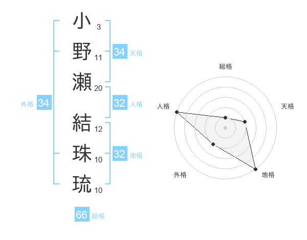 小野瀬 結珠琉さんの外格は34画の2点!