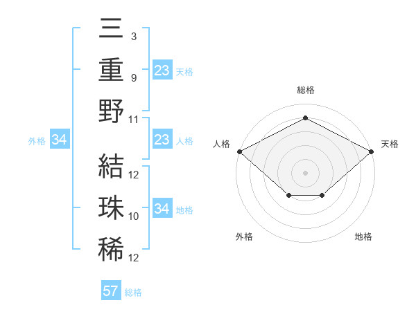 三重野 結珠稀さんを姓名の画数から五運を鑑定