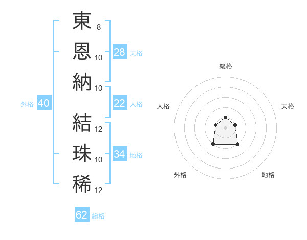 東恩納 結珠稀さんを姓名の画数から五運を鑑定