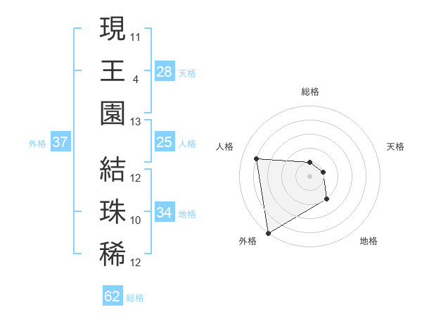 現王園 結珠稀さんを姓名の画数から五運を鑑定