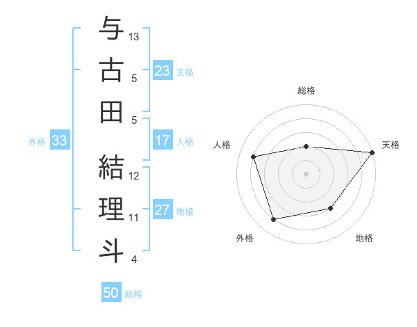 与古田 結理斗さんを姓名の画数から五運を鑑定
