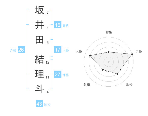 坂井田 結理斗さんの総格は43画の2点!