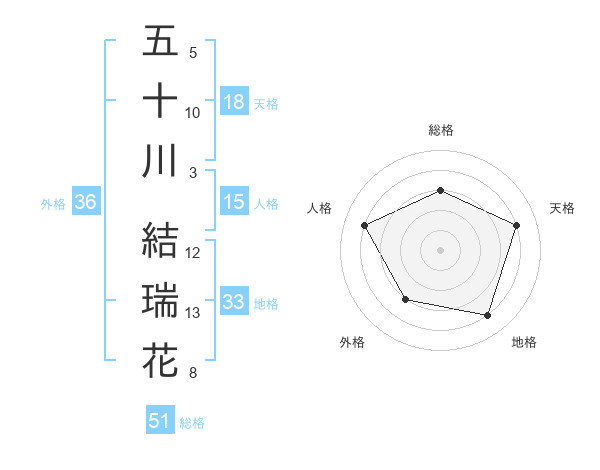 五十川 結瑞花さんを姓名の画数から五運を鑑定
