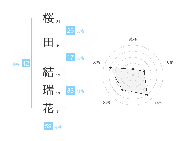 桜田 結瑞花さんを姓名の画数から五運を鑑定