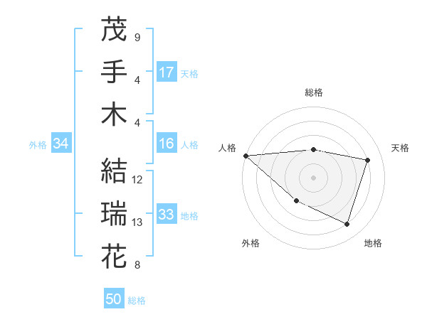 茂手木 結瑞花さんを姓名の画数から五運を鑑定