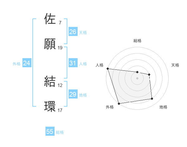 佐願 結環さんの外格は24画の5点!