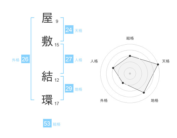 屋敷 結環さんを姓名の画数から五運を鑑定