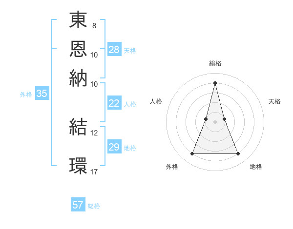 東恩納 結環さんを姓名の画数から五運を鑑定