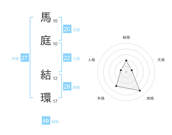 馬庭 結環さんの総格は49画の2点!