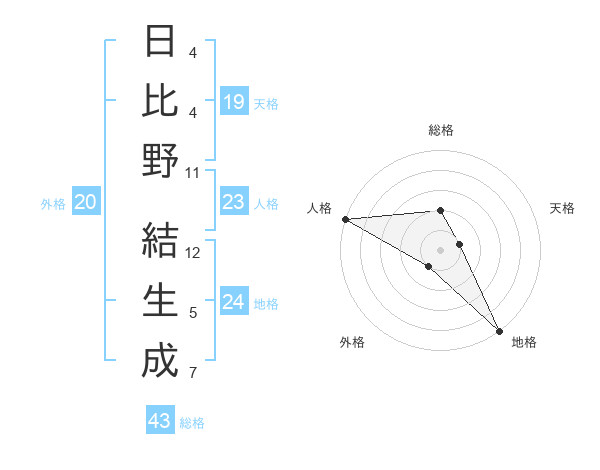 日比野 結生成さんを姓名の画数から五運を鑑定