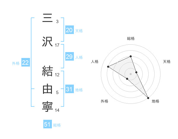 三沢 結由寧さんの外格は22画の1点!