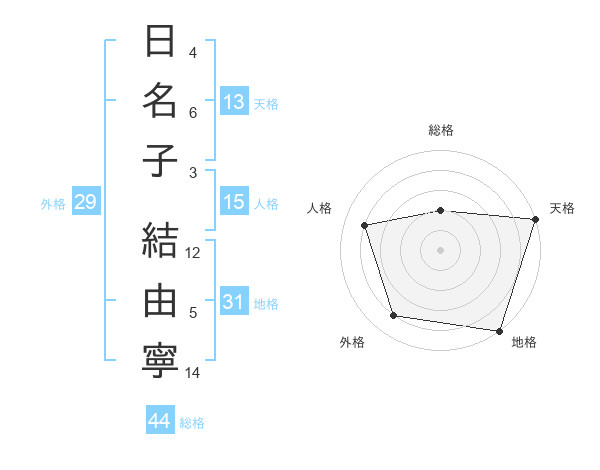 日名子 結由寧さんを姓名の画数から五運を鑑定