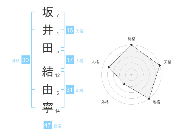 坂井田 結由寧さんを姓名の画数から五運を鑑定