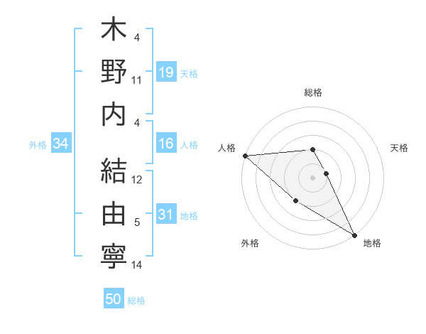 木野内 結由寧さんの総格は50画の2点