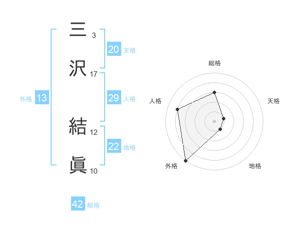 三沢 結眞さんを姓名の画数から五運を鑑定