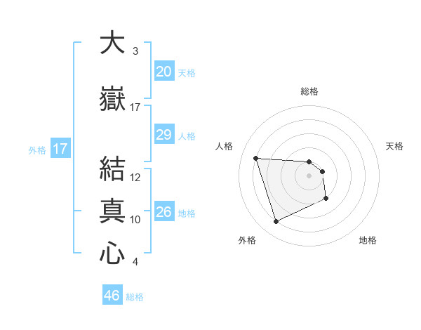 大嶽 結真心さんを姓名の画数から五運を鑑定