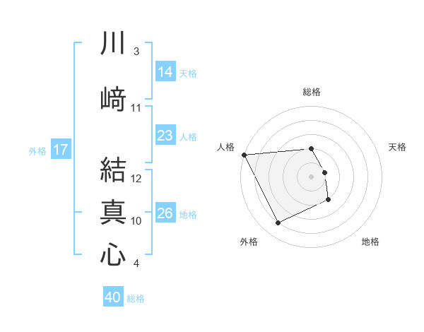 川﨑 結真心さんを姓名の画数から五運を鑑定