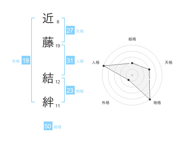 近藤 結絆さんの総格は50画の2点!