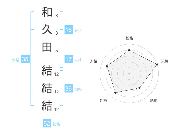 和久田 結結結さんを姓名の画数から五運を鑑定