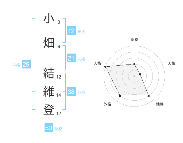 小畑 結維登さんの総格は50画の2点!