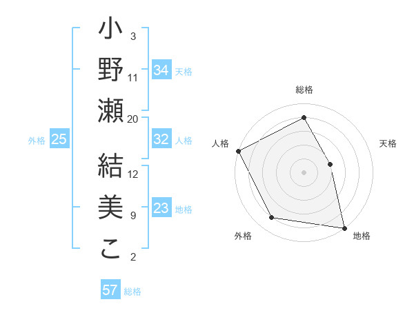 小野瀬 結美こさんを姓名の画数から五運を鑑定