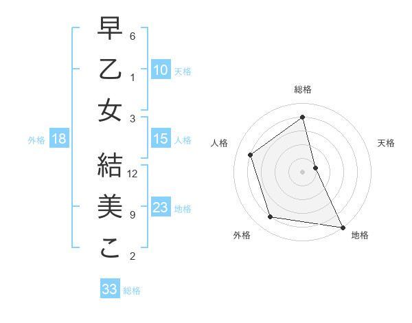 早乙女 結美こさんを姓名の画数から五運を鑑定