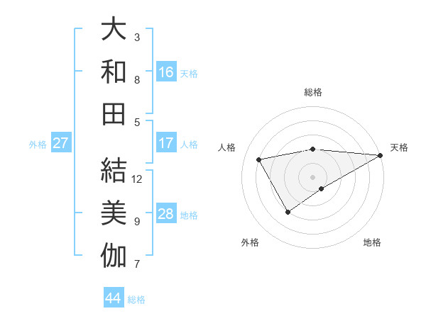 大和田 結美伽さんを姓名の画数から五運を鑑定