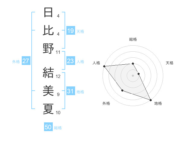 日比野 結美夏さんを姓名の画数から五運を鑑定