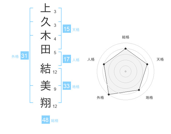 上久木田 結美翔さんの外格は31画の5点!