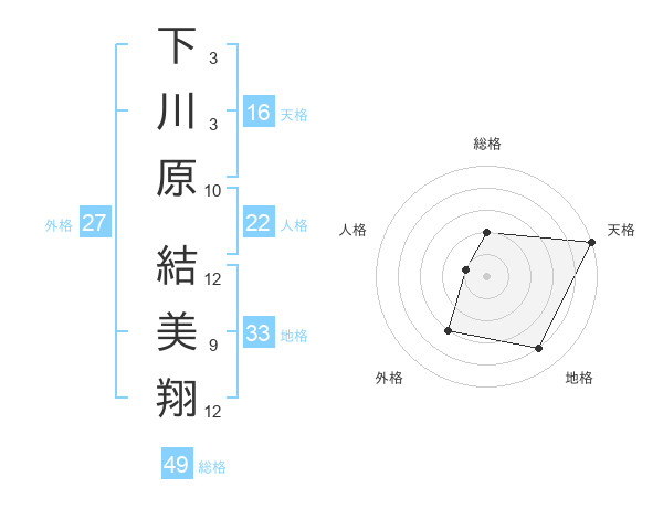 下川原 結美翔さんを姓名の画数から五運を鑑定
