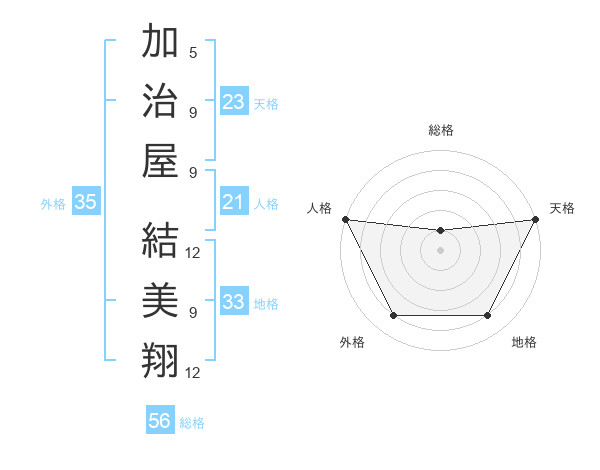 加治屋 結美翔さんの天格は23画の5点