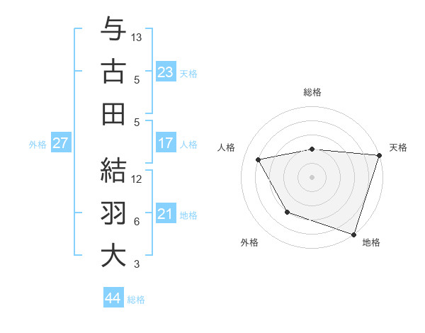 与古田 結羽大さんを姓名の画数から五運を鑑定