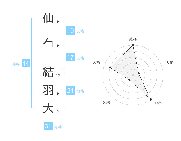 仙石 結羽大さんを姓名の画数から五運を鑑定