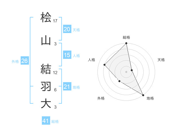 桧山 結羽大さんの総格は41画の5点!