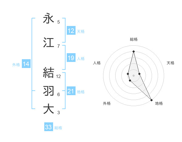 永江 結羽大さんを姓名の画数から五運を鑑定