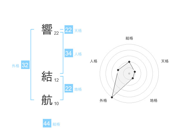 響 結航さんの総格は44画の2点!