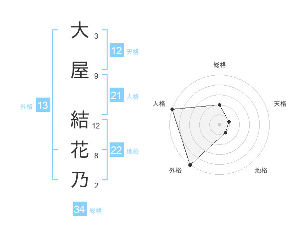 大屋 結花乃さんを姓名の画数から五運を鑑定