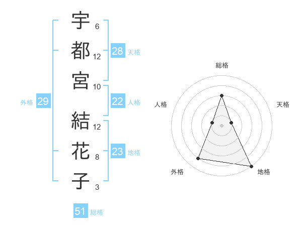宇都宮 結花子さんを姓名の画数から五運を鑑定