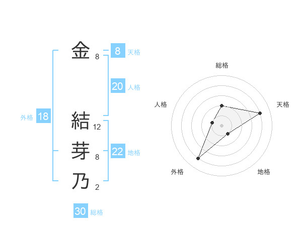 金 結芽乃さんの天格は8画の4点!