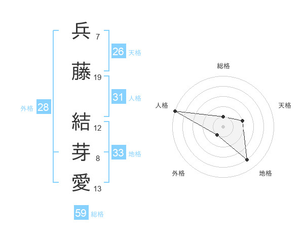 兵藤 結芽愛さんの総格は59画の1点!