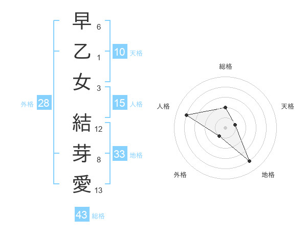早乙女 結芽愛さんを姓名の画数から五運を鑑定